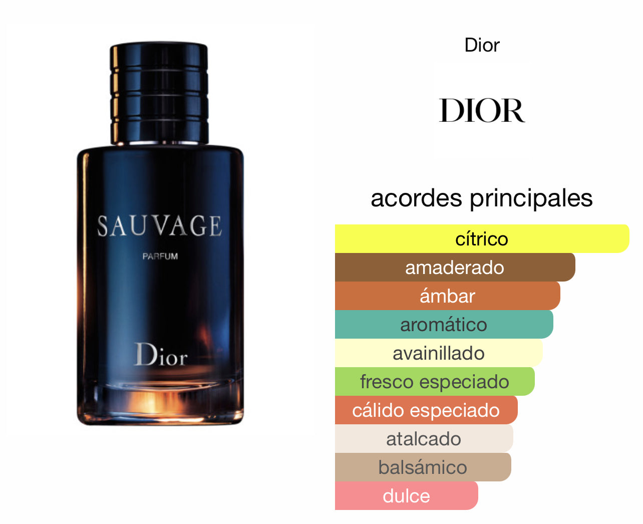💞 Acordes principales: Cítrico, amaderado, ámbar, aromático, avainillado, fresco especiado, cálido especiado, ataltado